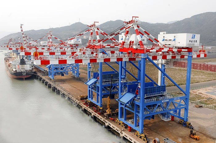 | 煙臺港萬華工業(yè)園碼頭1500t'h橋式抓斗卸船機 |