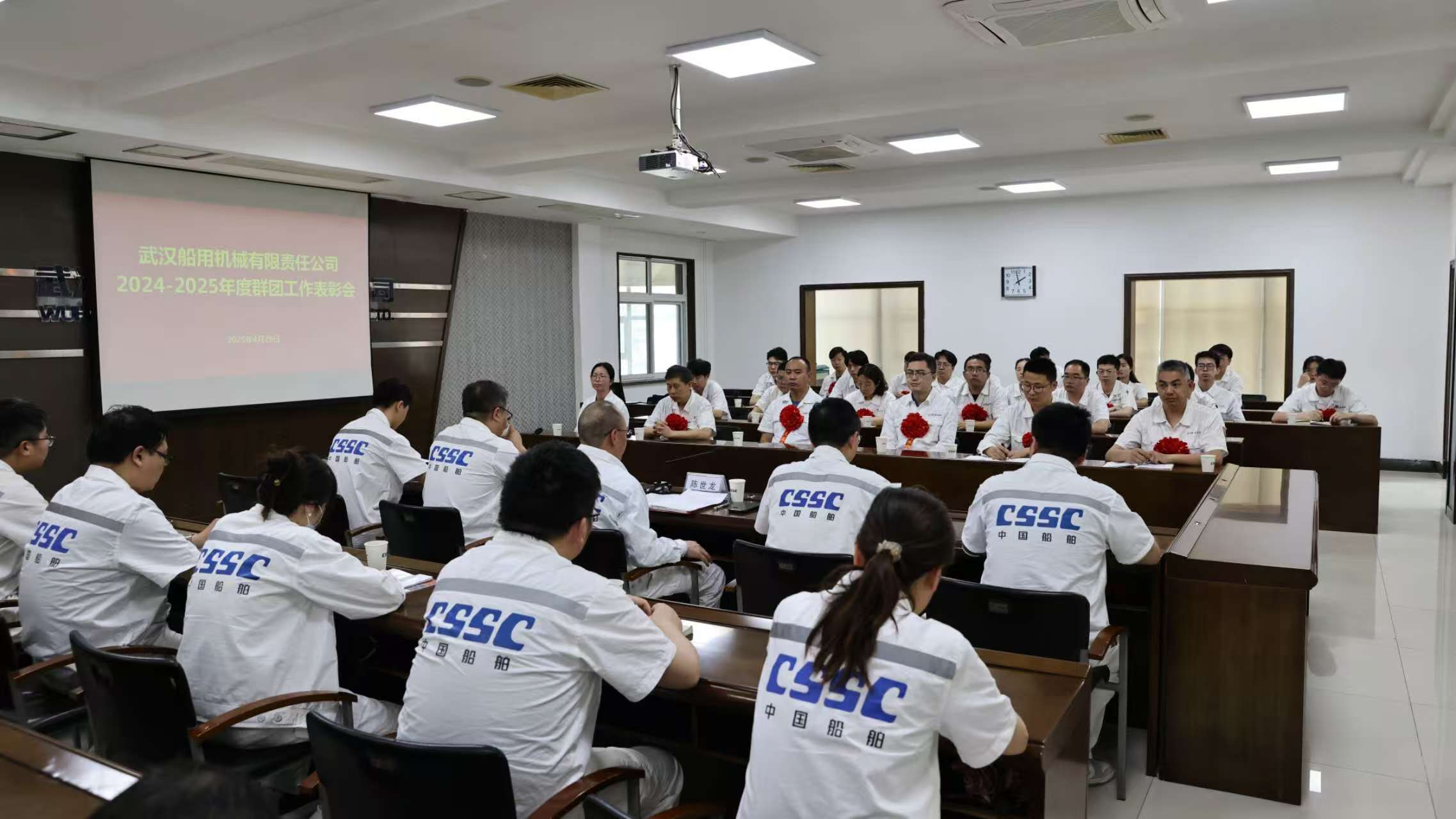 4月29日,中船集團武漢船機召開2024-2025年度群團工作表彰會,傳達學習習近平總書記在慶祝中華全國總工會成立100周年暨全國勞動模范和先進工作者表彰大會的講話精神,對公司工會、共青團先進集體和個人代表進行表彰。公司黨委委員、總會計師、工會主席陳世龍出席會議。