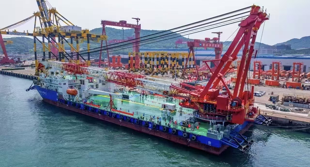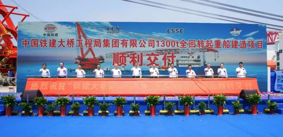 5月28日,中船集團武漢船機參建的中鐵建大橋局“鐵建大橋起2”1300噸全回轉(zhuǎn)起重船在青島海西重機碼頭順利交付。