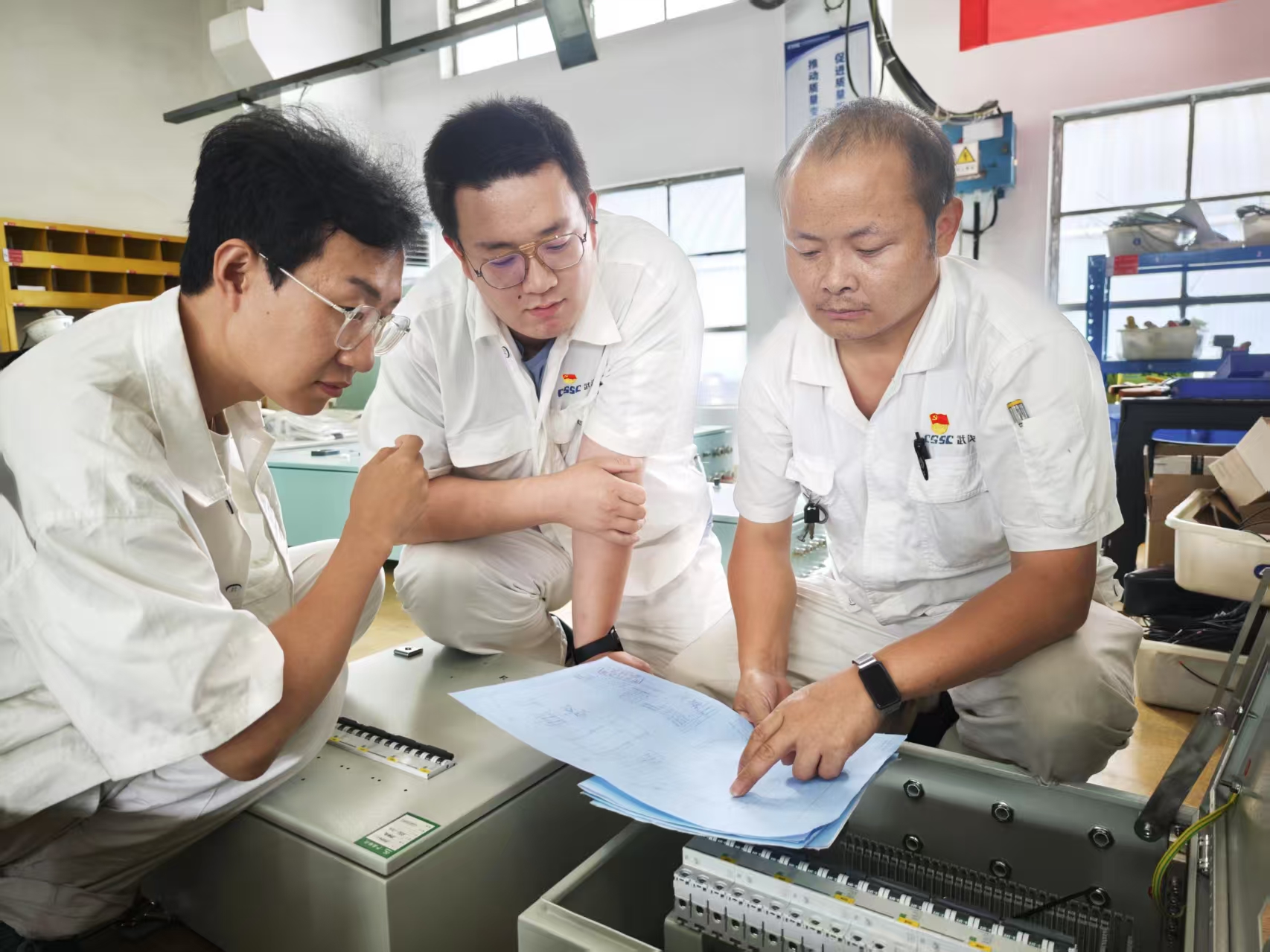 黨員帶頭,攻堅(jiān)克難。電工組長(zhǎng)何國(guó)虎,作為一線黨員、技能骨干,在完成某重點(diǎn)產(chǎn)品階段性試驗(yàn)后,挺膺擔(dān)當(dāng),及時(shí)趕回部門支援電控箱生產(chǎn),與組員吳天賦、李珉驍、袁菁菁、李江濤等一起趕進(jìn)度、保節(jié)點(diǎn)。面對(duì)小組青年員工對(duì)新產(chǎn)品、新工藝裝配經(jīng)驗(yàn)欠缺的情況,何國(guó)虎充分發(fā)揮黨員先鋒模范作用,提前借出圖紙,利用工作間隙,帶頭示范正確裝配流程,傳授工作經(jīng)驗(yàn)。通過(guò)團(tuán)隊(duì)共同努力,小組成員在一個(gè)月內(nèi)完成了多個(gè)重難點(diǎn)項(xiàng)目,節(jié)點(diǎn)實(shí)現(xiàn)率100%。